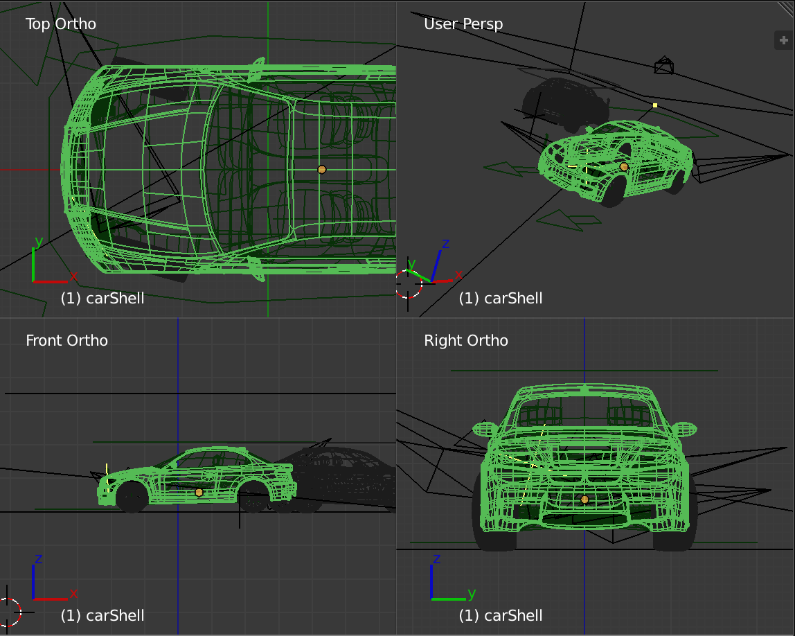 In the screenshot above you can see 1 view is a perspective view and 3 views are orthographic views.