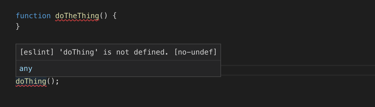 Above you can see I mis-spelled doTheThing as doThing. There's a red squiggle